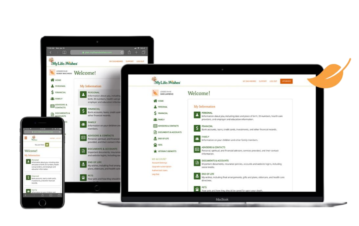The Legacy Vault is a secure, cloud-based solution designed to store and organize your most important documents and critical information in one place. This ensures that your loved ones have immediate access to everything they need when they need it most.